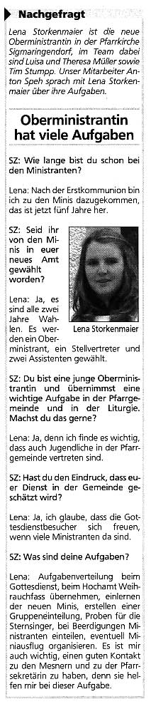Bericht in der Schwäbischen Zeitung vom 12.11.09 und Interview vom 18.11.09