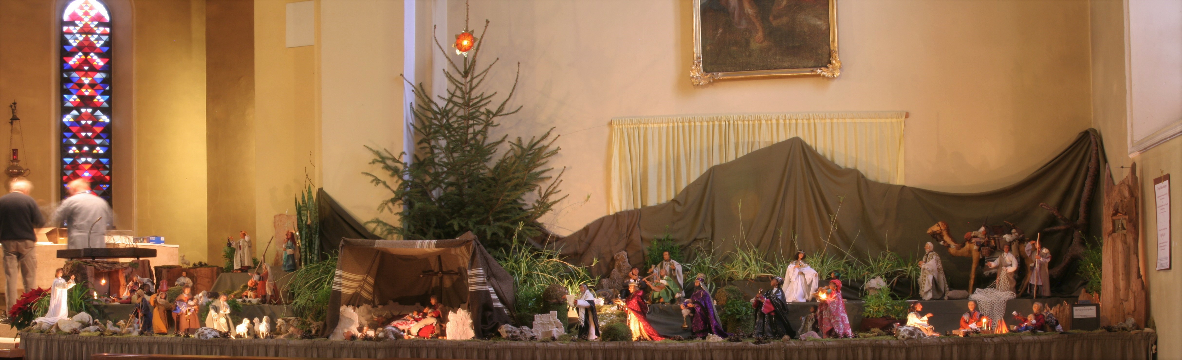 Die Krippe in der Pfarrkirche St. Peter und Paul Zu den ältesten Kirchen aus der Frühzeit gehört die Pfarrkirche in Sigmaringendorf, die im Jahre 1317 durch den Konstanzer Weihbischof Berthold I. geweiht wurde. Der Turm ist noch älter und stammt aus dem 12.Jahrhundert. Ihre heutige Gestalt bekam die Kirche im Jahre 1852, als sie durch das jetzige Querschiff und einen neuen Chor erweitert wurde. Die